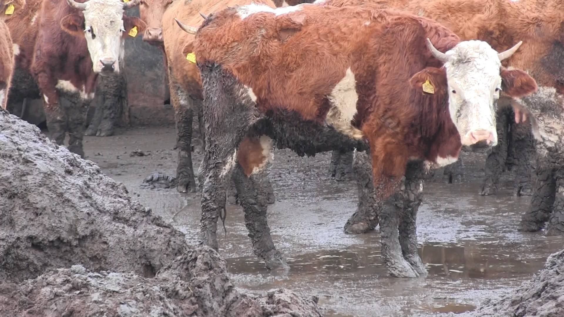 60 de vaci, ținute în noroi, sub cerul liber, la o fermă improvizată din Arad. Fermierul riscă să rămână fără fonduri europene