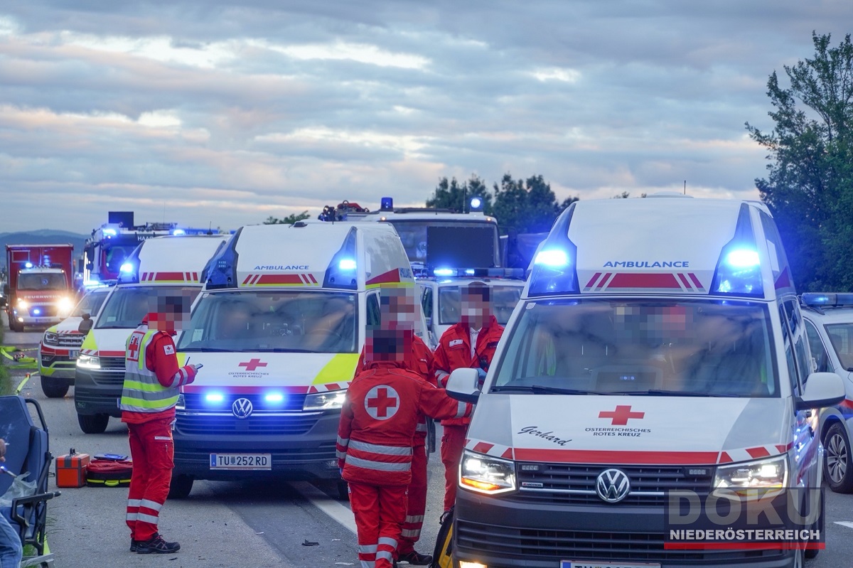 Peste zece ambulanțe, mașini de pompieri și un elicopter, chemate după ce un microbuz cu români a intrat într-un TIR, în Austria