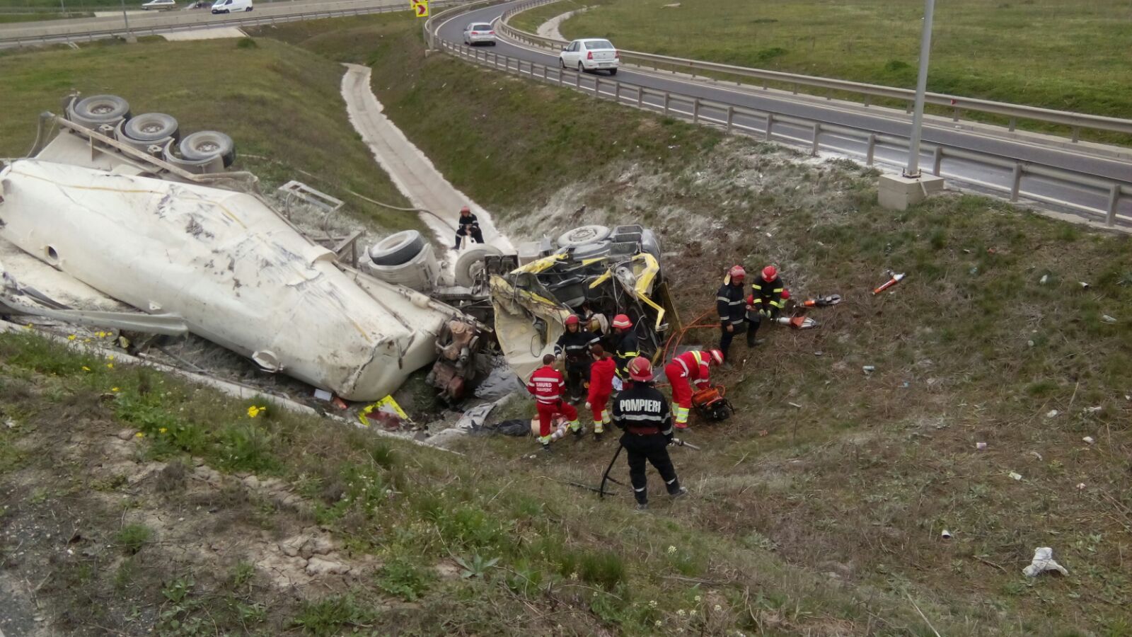 ACCIDENT MORTAL în Constanţa! Un TIR s-a răsturnat pe A4! FOTO & VIDEO
