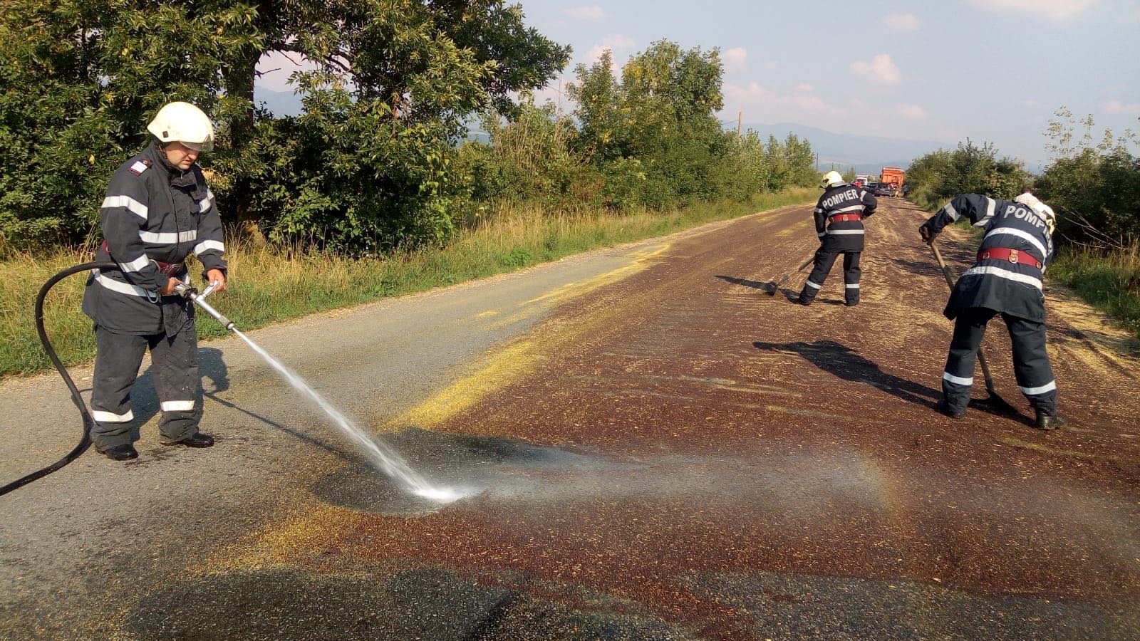Accident pe DN 57, în Caraș-Severin. Două mașini s-au ciocnit din cauza rapiței scurse dintr-un camion