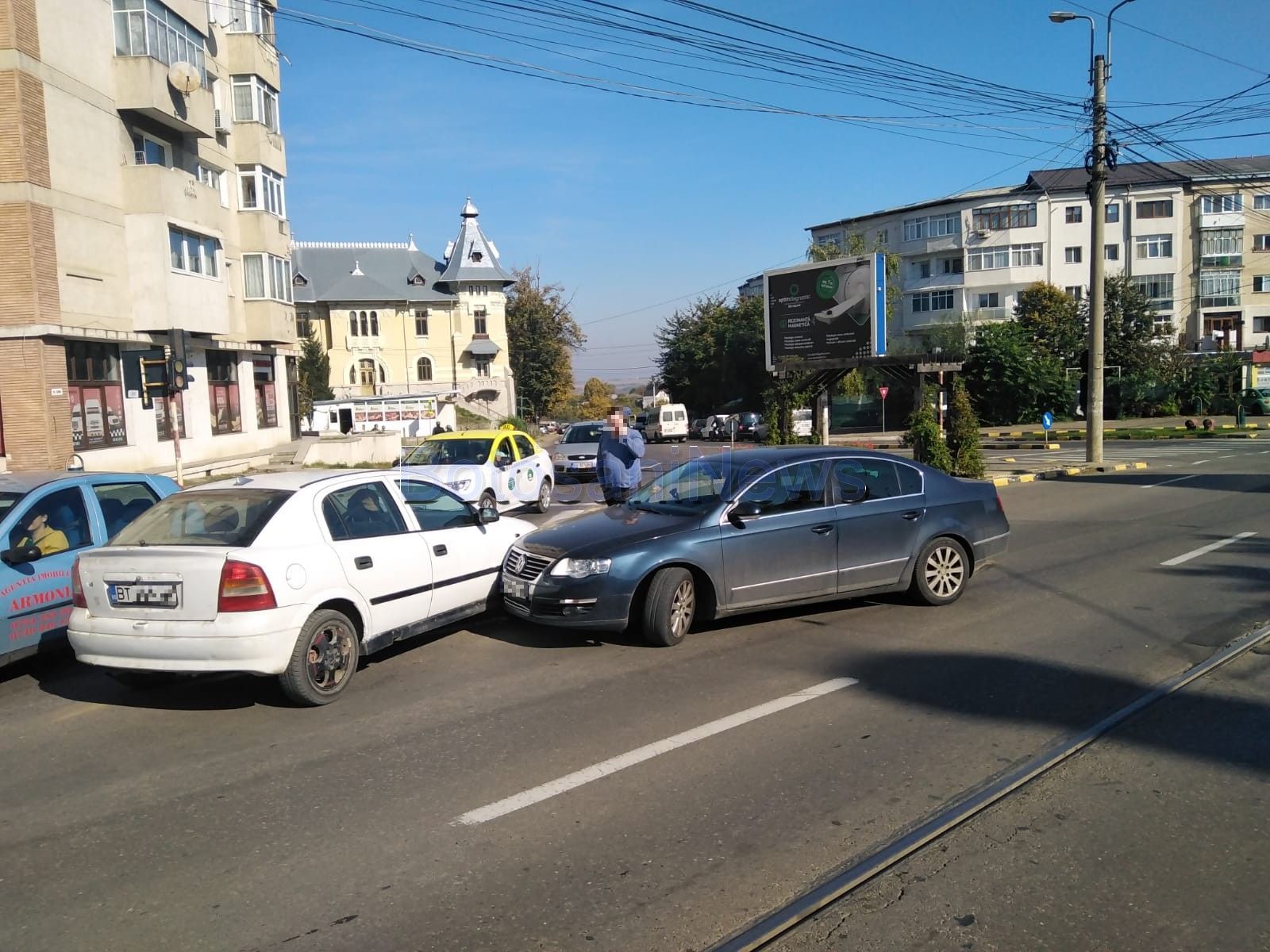 Accident rutier produs de o maşină fără şofer, într-o intersectie din Botoșani. Fusese parcată în pantă și nu a fost asigurată corespunzător