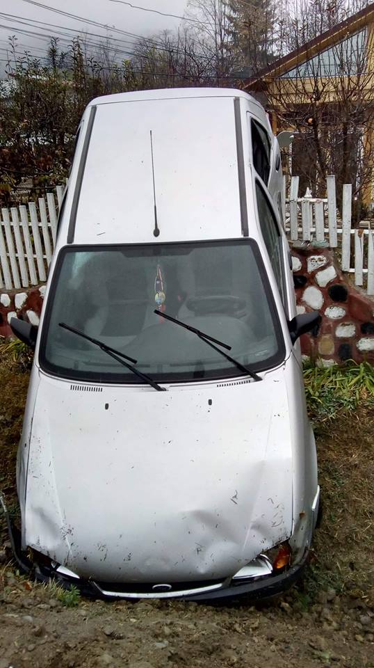 Accident spectaculos în județul Prahova: și-a „parcat” mașina în vârful gardului!