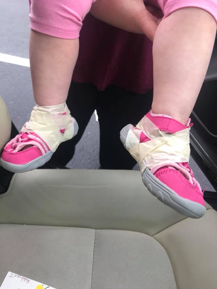 Educatorii i-au lipit pantofii de glezne (foto Facebook Jessica Hayes)