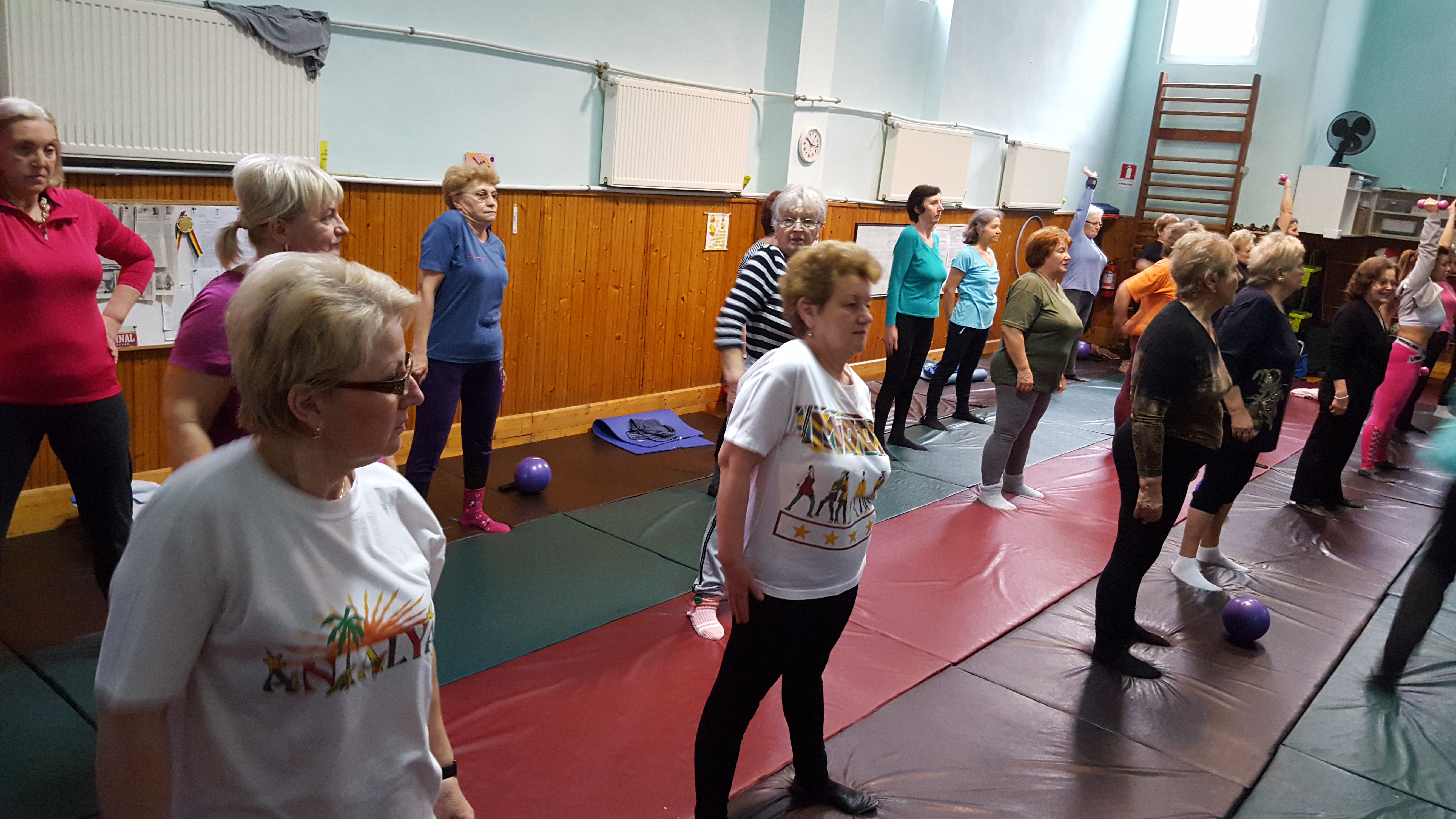 Decana de vârstă este doamna Ica, o bătrânică de 76 de ani care face exerciții cu mingea, gimnastică și sărituri de parcă ar fi o adolescentă. ”Chiar am venit de la inceput, de când s-a deschis sala de sport, și mă simt foarte bine, se văd rezultatele acestor exerciții fizic, dar și psihic”, ne-a mărturisit aceasta.