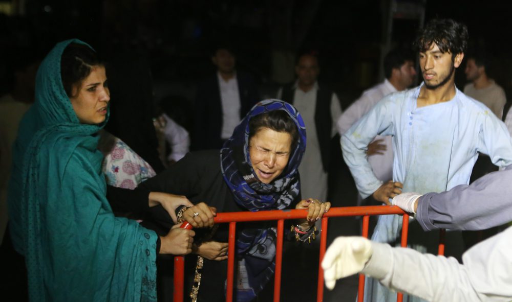 epa07778558 An Afghan woman who has lost his husband and two sons griefs at the door of the hospital, after a suicide attacker exploded his explosive vest among a wedding ceremony in a wedding hall in Kabul, Afghanistan, 18 August 2019. According to reports at least dozens of people were killed and more than 80 others wounded. EPA-EFE/JAWAD JALALI