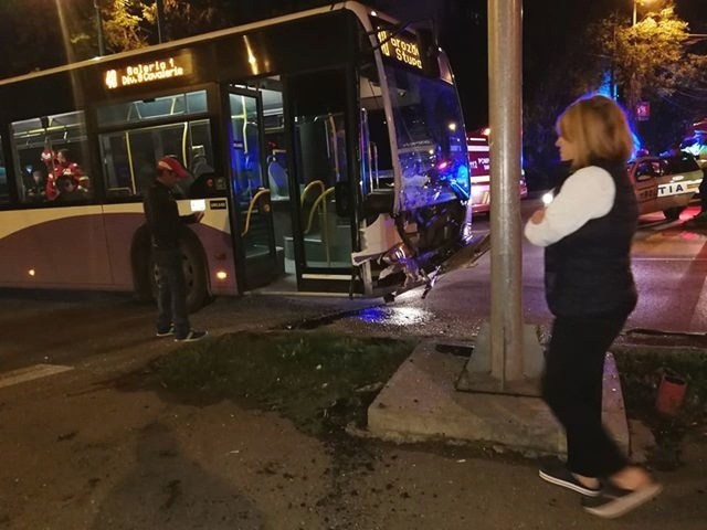 Autobuz lovit de un autoturism care a trecut pe roșu, într-o intersecție din Timișoara