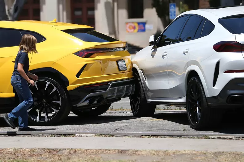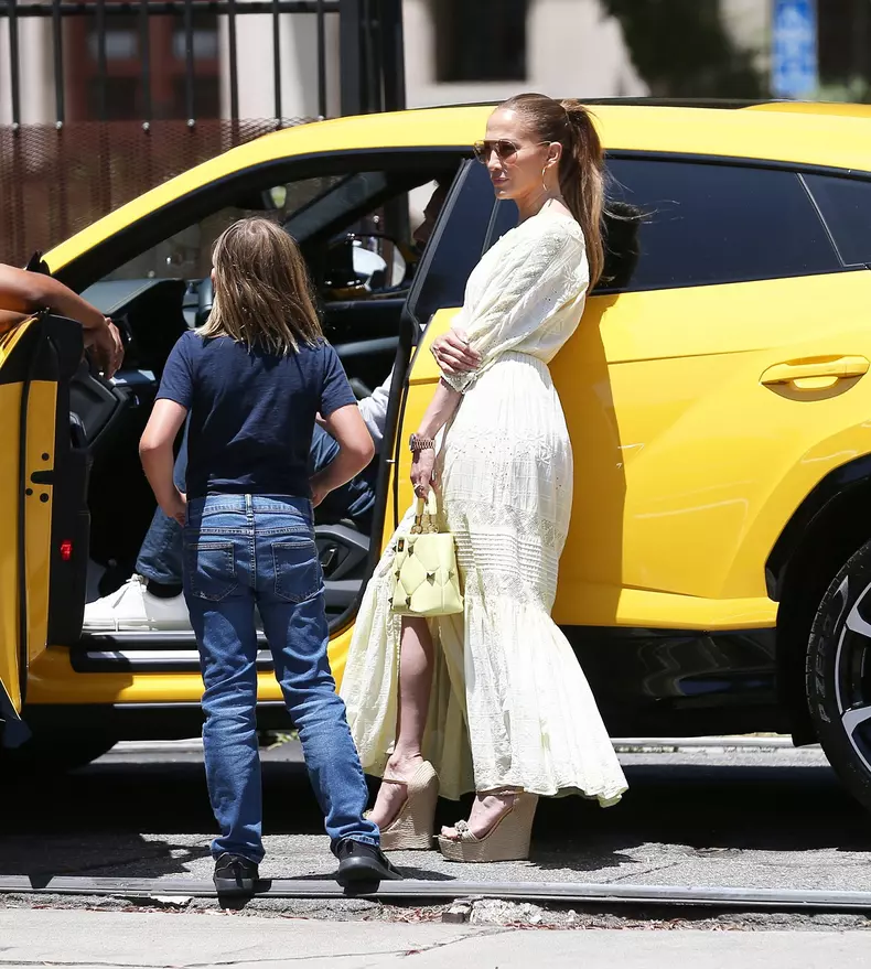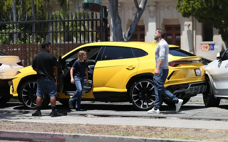 Sunday, June 26, 2022 - Ben Affleck and Jennifer Lopez are spotted at an exotic car dealership as they look to build upon their already impressive fleet of luxury rides. Ben's son Samuel can be seen sitting up the driver seat and as he revs the engine, the Lamborghini Urus crashes into a parked BMW SUV! A concerned Ben scopes out the damage before negotiating with the salesmen. Juliano/,Image: 703050742, License: Rights-managed, Restrictions: , Model Release: no, Pictured: Ben Affleck, Jennifer Lopez, Credit line: Profimedia