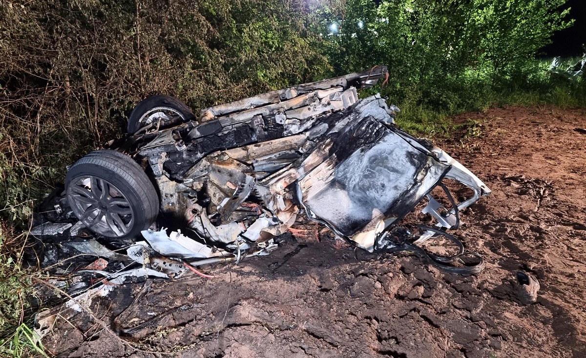 BMW X3 imposibil de recunoscut după ce s-a rupt în două și a luat foc. Un tată și fiul lui de 12 ani au murit în accidentul din Germania