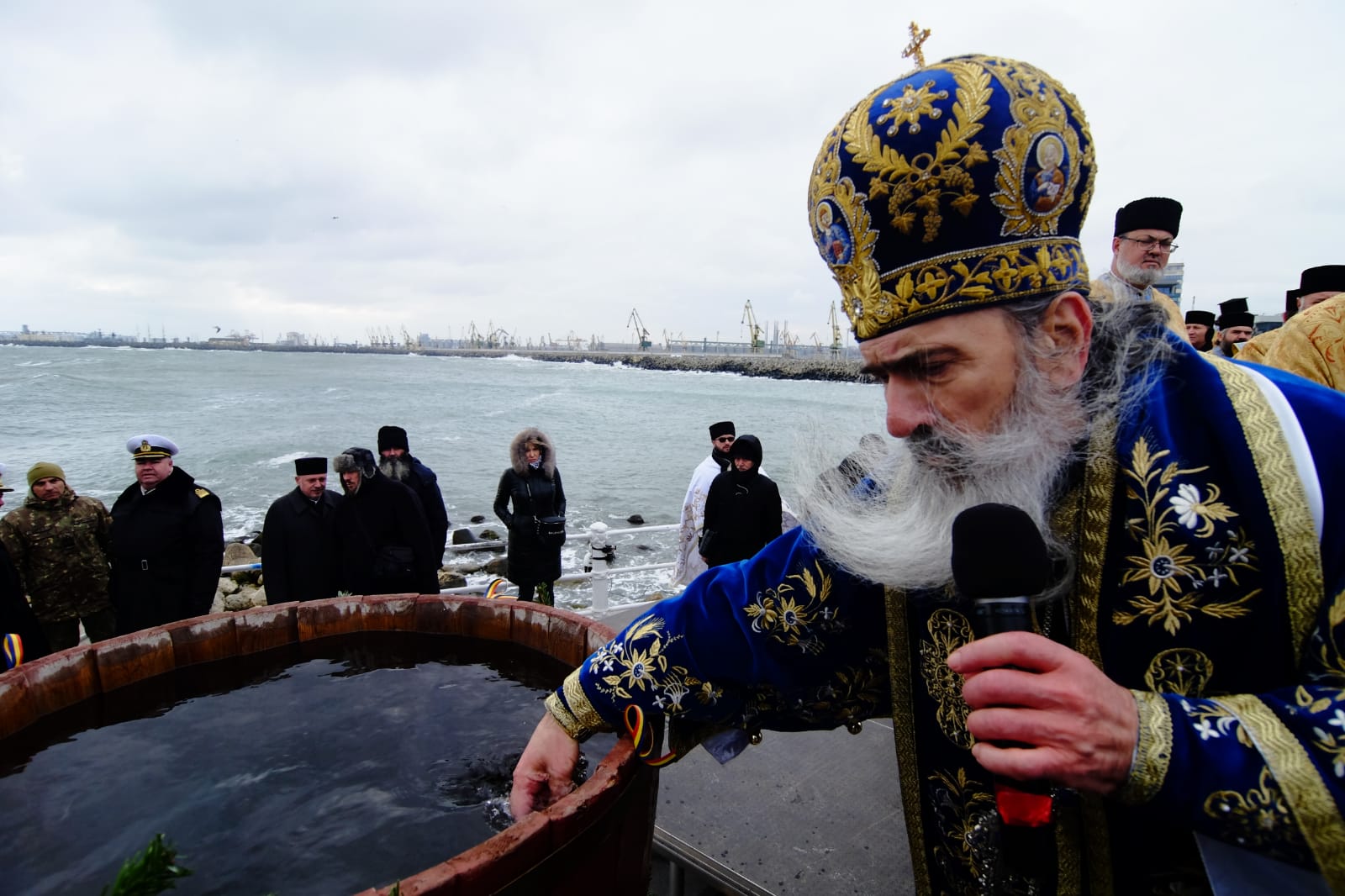 Boboteaza la Constanța. IPS Teodosie a sfințit apele dintr-o șalupă, susținut de scafandrii militari