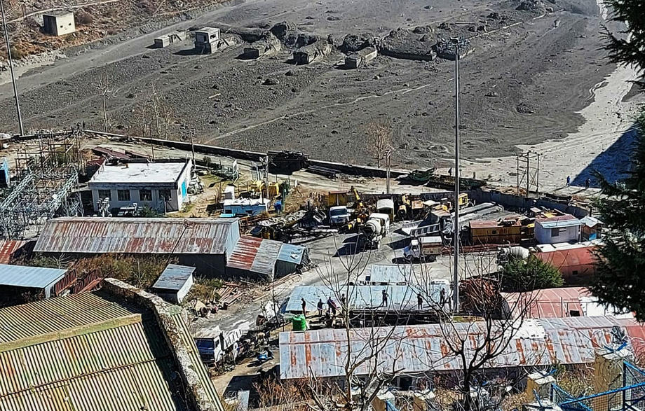 epa08994124 A handout photo made available by the State Disaster Response Force shows rescue operation near the Dhauliganga hydro power project at Reni village in Chamoli district, Uttrakhand, India, 07 February 2021. Over 100 people are feared dead after part of the Nanda Devi glacier broke off causing massive floods in the Tapovan area of Uttarakhand's Chamoli district. EPA-EFE/STATE DISASTER RESPONSE FORCE / HANDOUT HANDOUT EDITORIAL USE ONLY/NO SALES