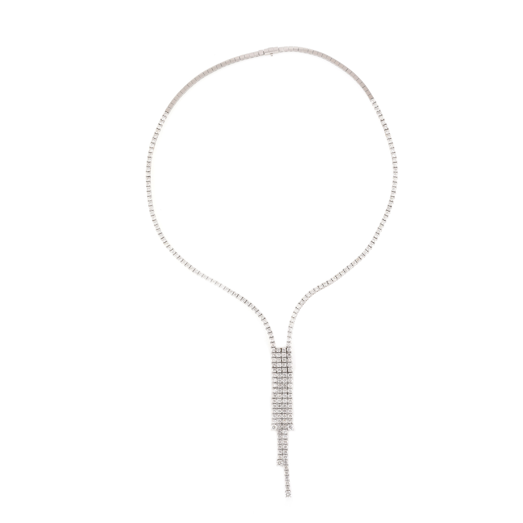 Festiv demi-parure din aur alb, compus dintr-un colier și pereche de cercei, ornat cu diamante