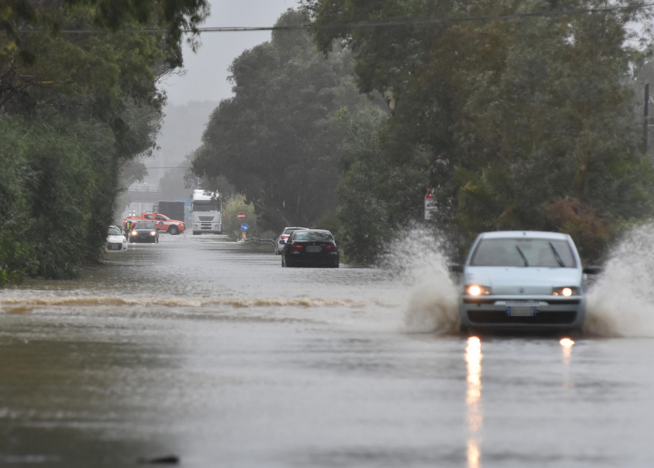 epa09546990 The flooded road from Catania to Syracuse due to the flooding of rivers and streams in Catania, Sicily Island, Italy, 26 October 2021. A storm has struck in the past few hours in Catania causing a lot of damage. A man was reported drowned as he got out of his car. EPA-EFE/ORIETTA SCARDINO
