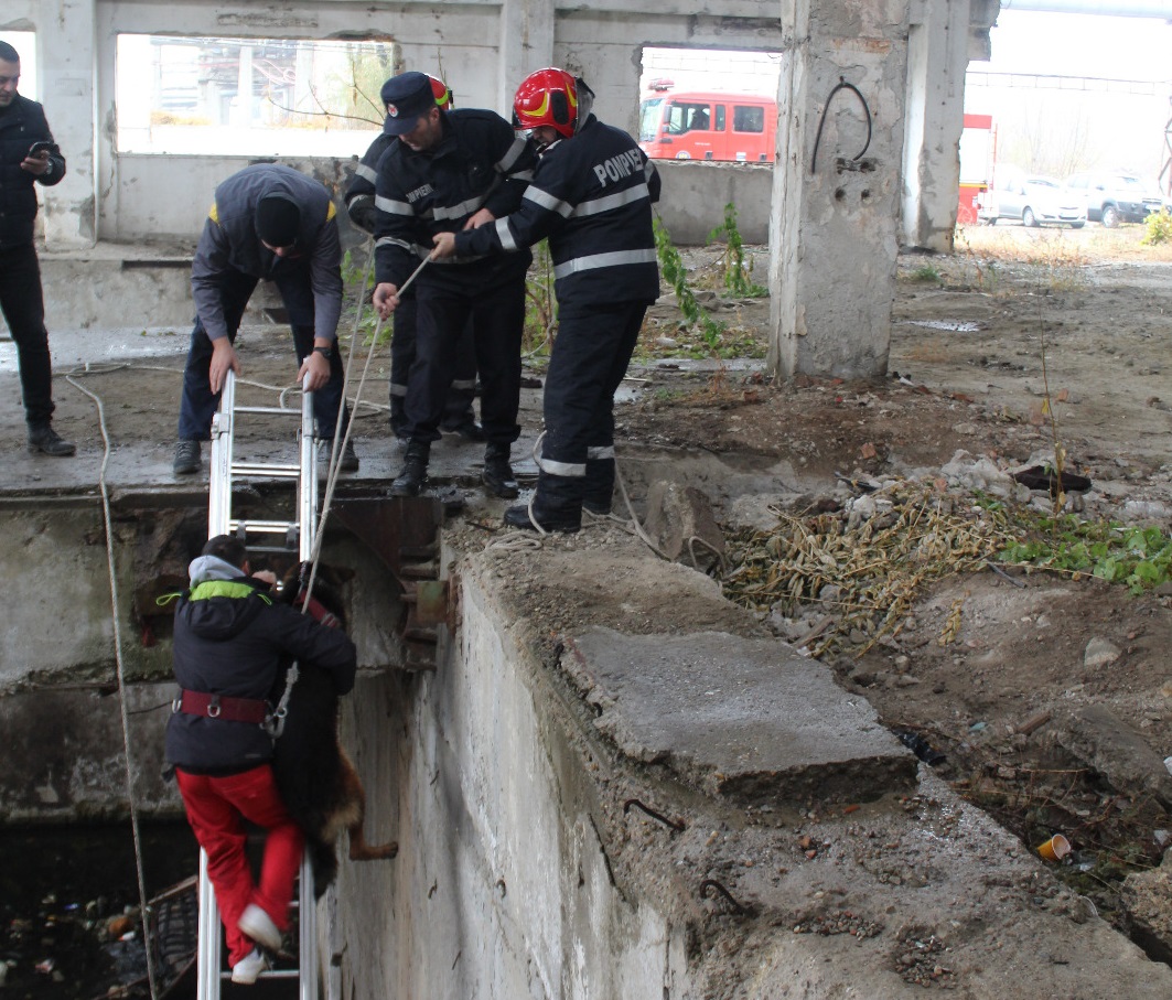 VIDEO&FOTO/ Ciobănesc german salvat după o săptămână de pompierii vrânceni dintr-un bazin adânc de 8 metri. Bobiță a lătrat disperat zi și noapte până a fost auzit
