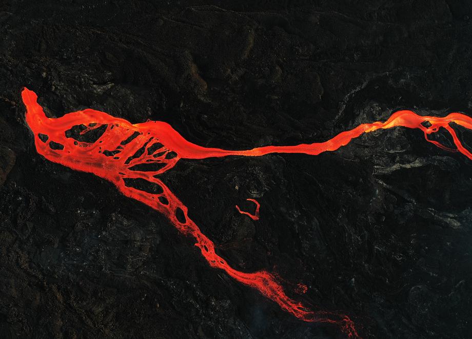epa09583557 A picture taken with a drone shows volcano magma at Tajuya, La Palma island, Canary Islands, Spain, 15 November 2021. Cumbre Vieja volcano erupted on 19 September and has ejected out smoke, ashes and lava since then. EPA-EFE/STR