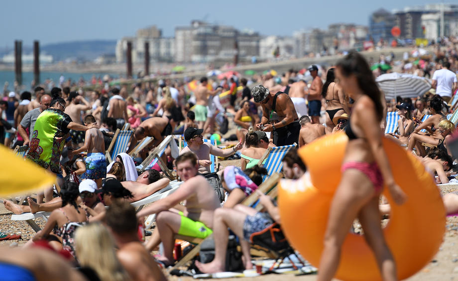 epa08508692 People soak up the sun on Brighton beach in Brighton, Britain, 25 June 2020. Temperatures of 33C have brought people to the beaches and parks as Britain continues to ease its lockdown. British Prime Minister Boris Johnson has changed the two metre distancing rules from two meters to one. Pubs, galleries and cinemas can reopen their doors from 04 July. Countries around the world are taking increased measures to stem the widespread of the SARS-CoV-2 coronavirus which causes the Covid-19 disease. EPA-EFE/ANDY RAIN