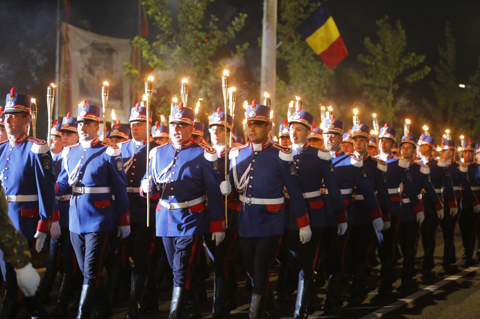 Defilare impresionantă la Buzău. Sute de militari au făcut paradă cu torțe de Ziua Eroilor