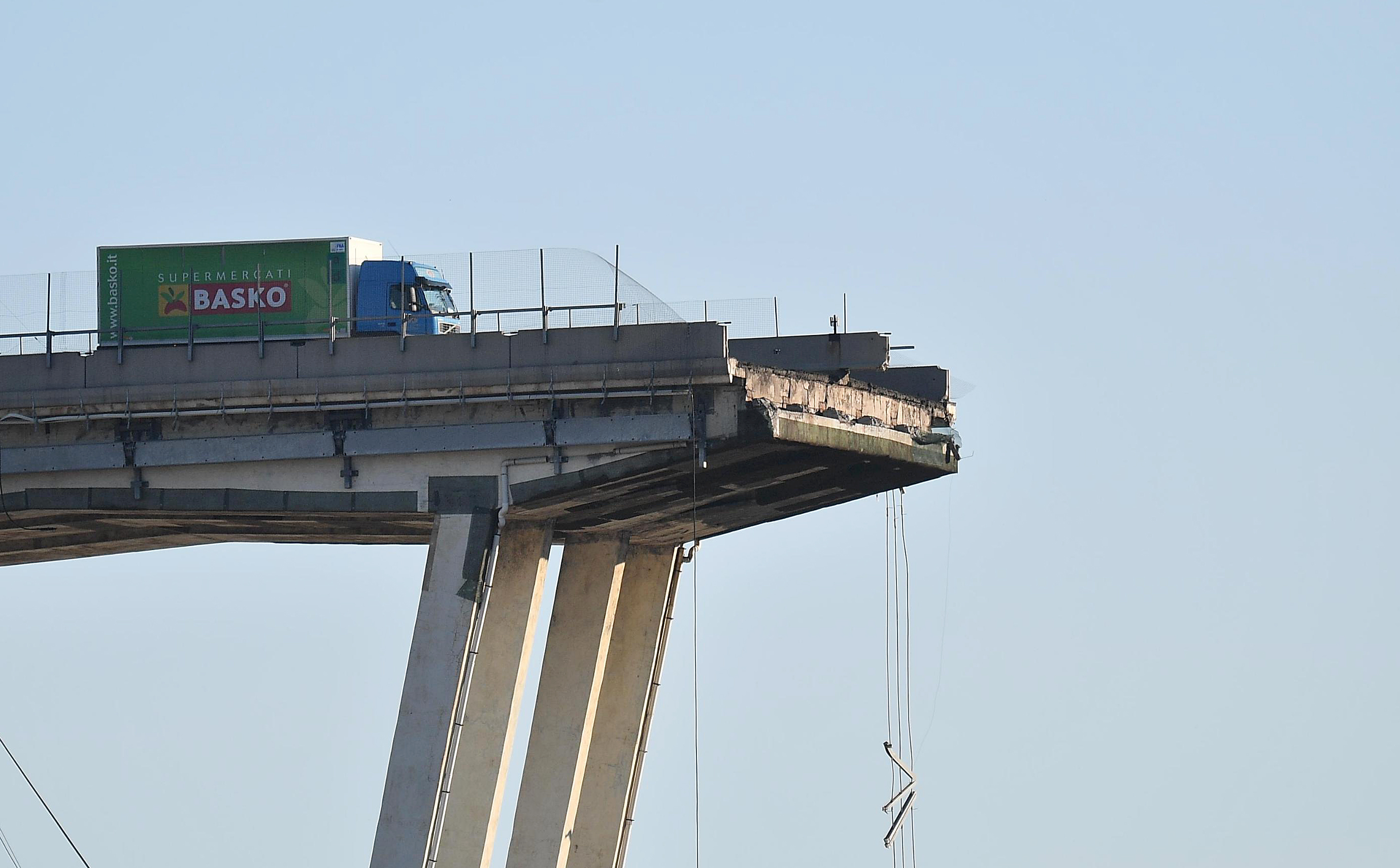 Camionul oprit la câțiva metri de Podul Morandi (FOTO: EPA)