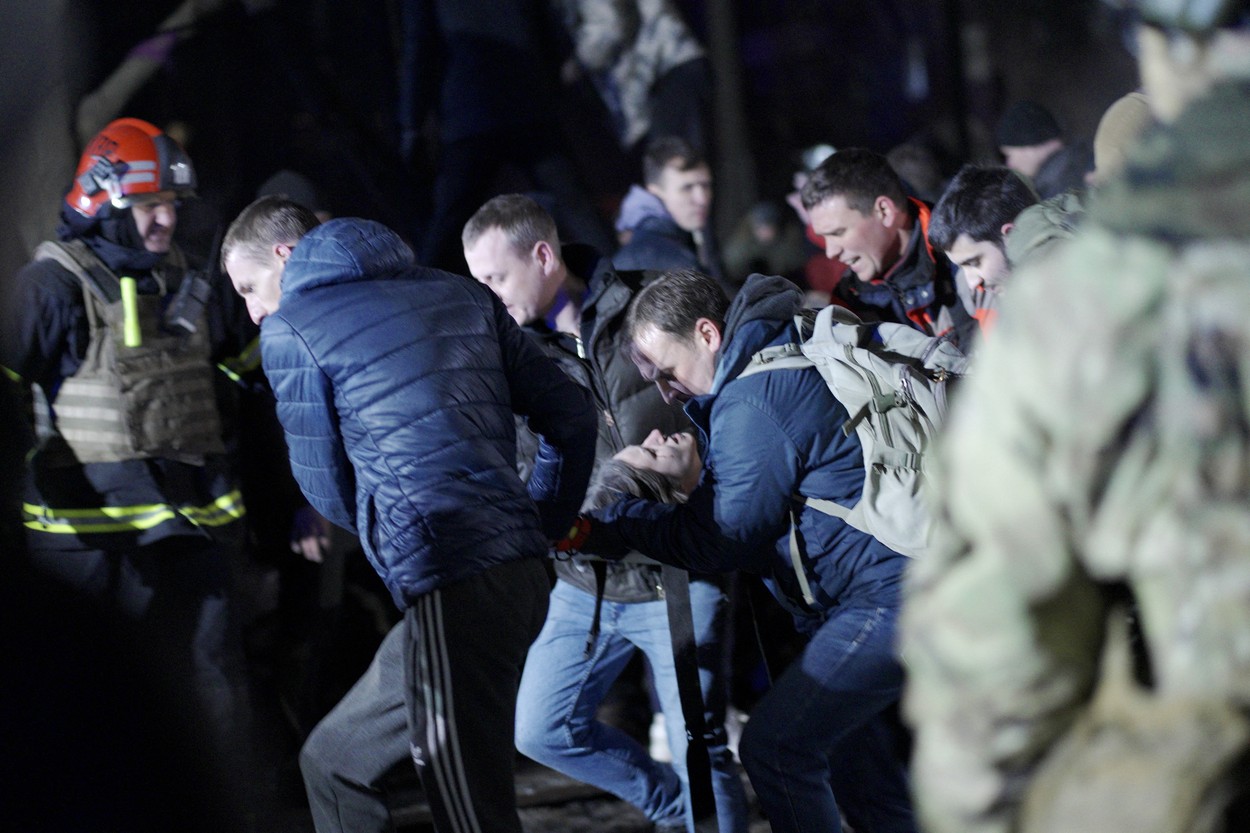 Imagini de la operațiunile de salvare a oamenilor prinși sub ruinele blocului lovit de o rachetă rusească în Dnipro