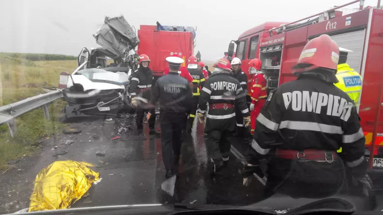 Doi morți și patru răniți într-un accident în Brăila. Un microbuz a fost lovit de un TIR intrat pe contrasens/ FOTO&VIDEO