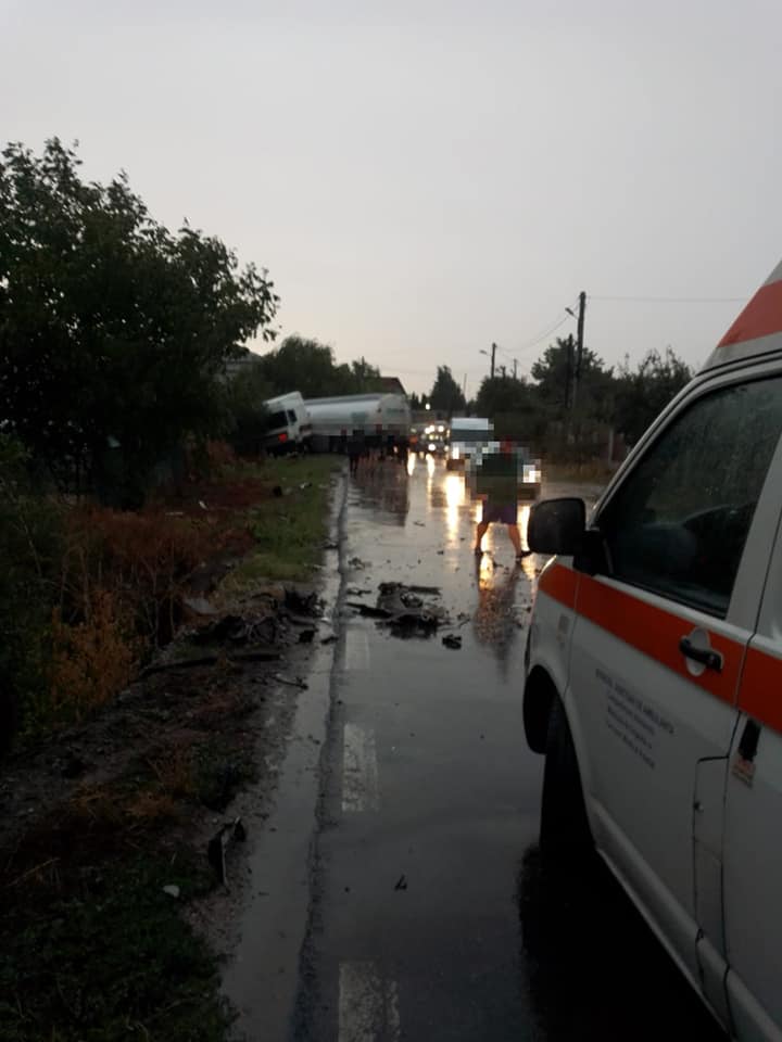Două persoane au ajuns la spital în urma unui accident între o cisternă și un autoturism, în Giurgiu
