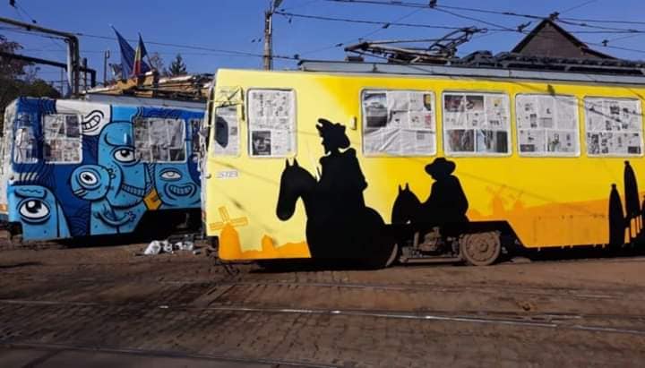 Două tramvaie pictate cu elemente culturale din Grecia, Spania, Suedia și România circulă prin București
