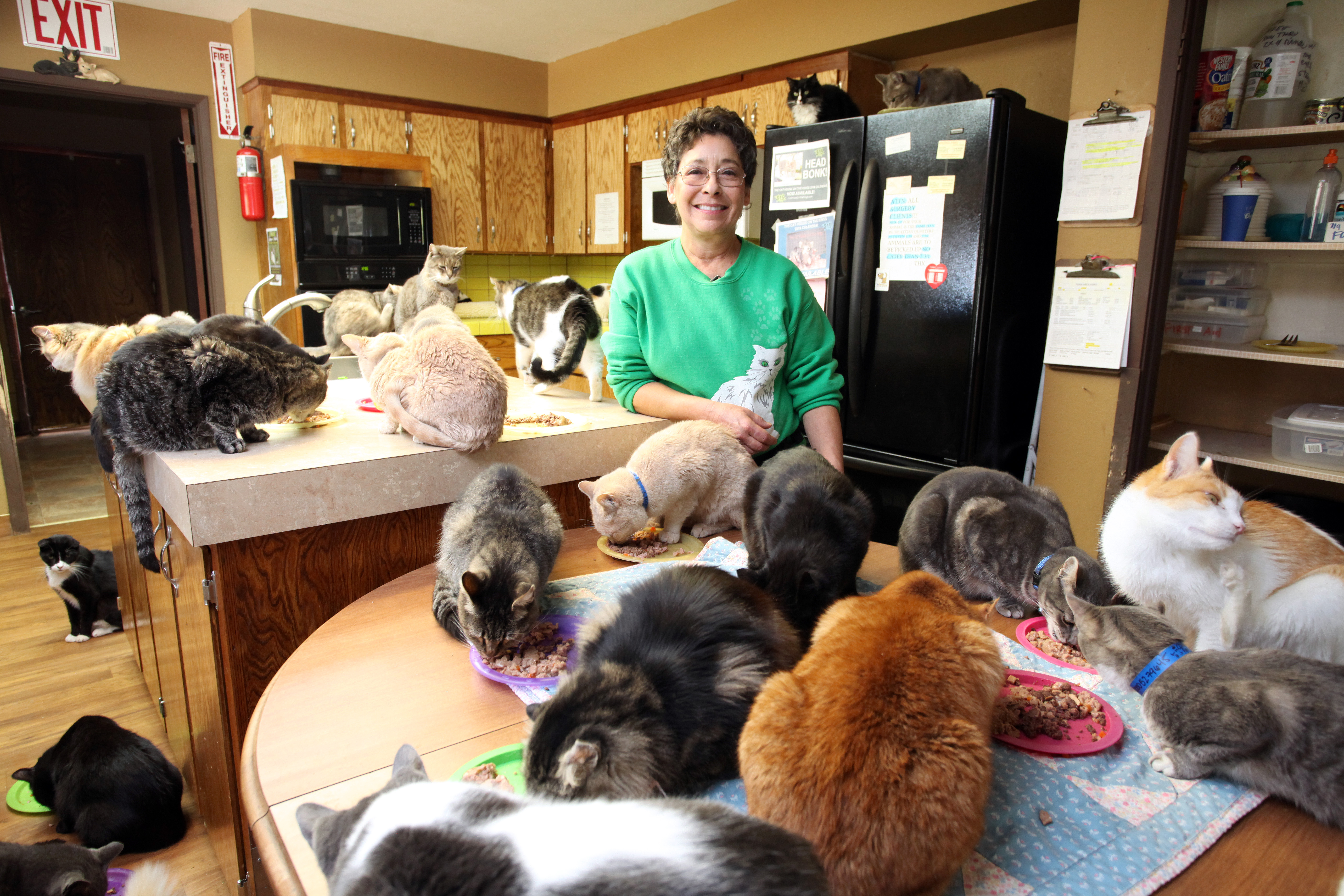 Aşa că, după ce a trecut printr-un divorţ la sfârșitul aniilor 80, aceasta a realizat că în sfârşit a venit momentul să-și îndeplinească visul și să devină îngrijitoare de pisici. Așadar, ea a început să adune pisici de pe stradă. Încet, încet, numărul acestora a crescut, astfel încât Lynea şi-a transformat casa într-un adevărat adăpost pentru animale. La ora actuală, acesta găzduieşte puţin peste o mie de feline, 800 de pisici adulți și 300 de pui. iar Lynea a fost nevoită să se mute din casă într-o rulotă, bineînţeles, tot pe proprietatea sa, pentur că nu mai are loc de ele. “Am ajuns de la o casă cu cinci camere la o rulotă. Când m-am mutat în rulotă mi-am promis că nu voi lua niciun animal cu mine, însă nu m-am învăţat. Acum o împart şi pe aceasta cu 20 de pisici şi patru câini”, a povestit femeia pentru presa americană. Aceasta a mai povestit că de-a lungul a 24 de ani a salvat viața a 28.000 de feline și sunt persoane care s-au oferit voluntar să o ajute să-și hrănească toate animăluțele.