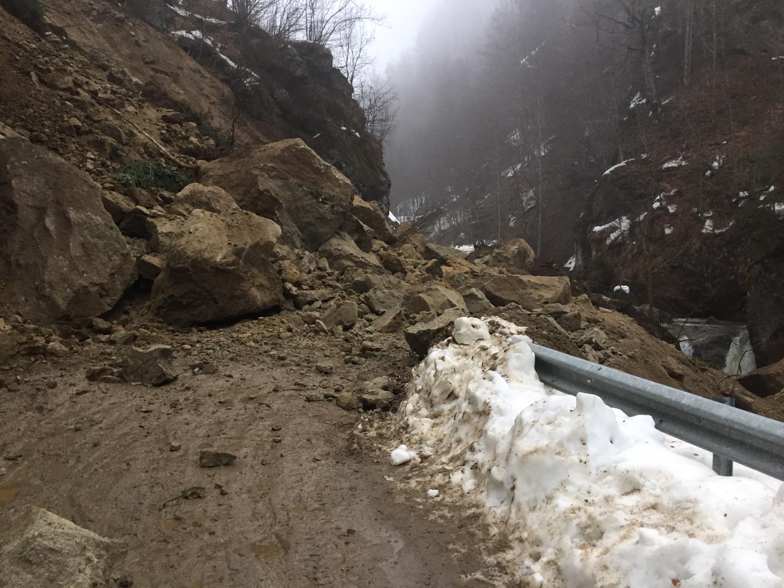 Drumul spre Schitul Pahomie din Vâlcea este blocat. O stâncă a căzut de pe munte / FOTO