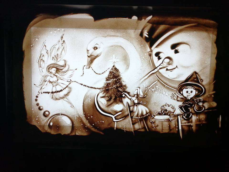 Eva Aibaz, artista care pictează cu nisip: „Am peste tot, în genți, în pantofi, pe covor. Trebuie să aspir în fiecare zi”