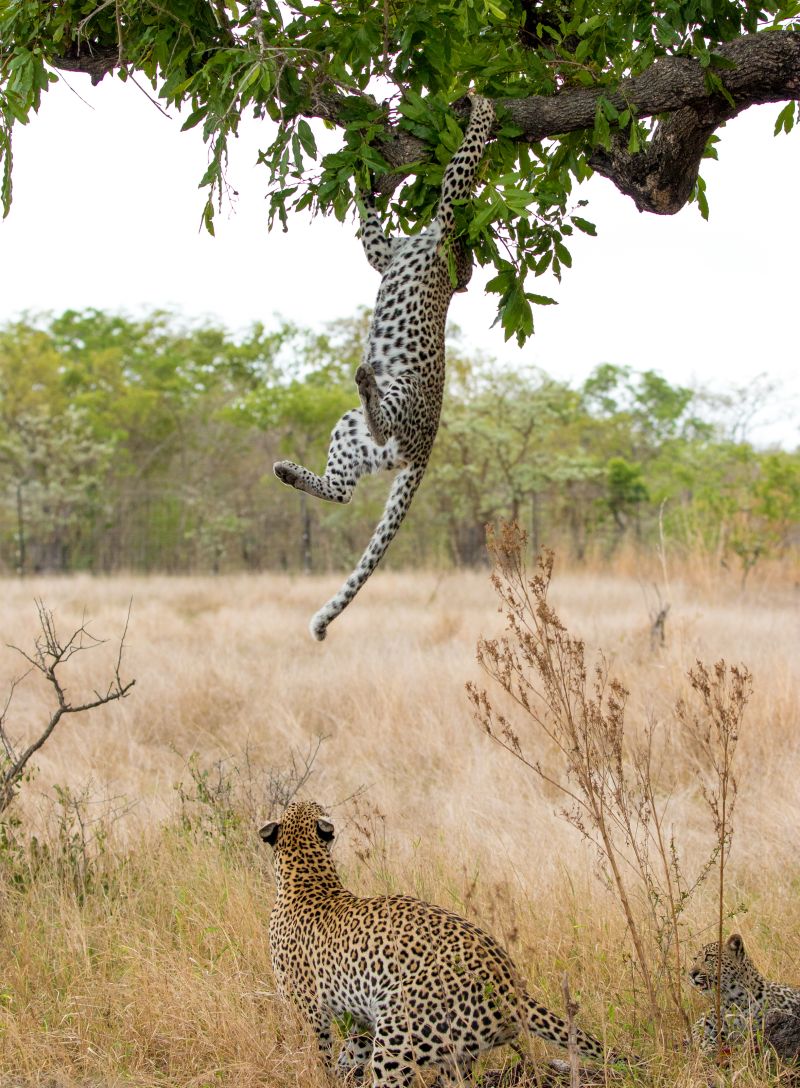 FABULOS | Puiul de leopard care se temea să coboare din copac! Reușește mama lui să-l dea jos? FOTO