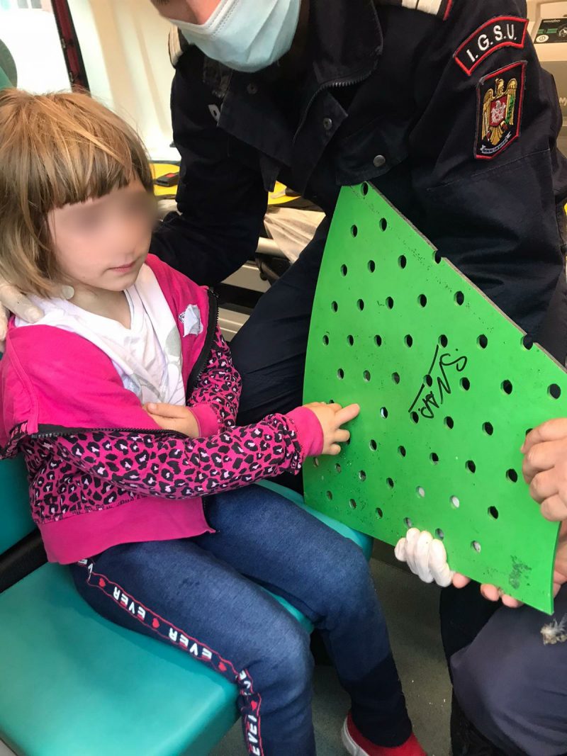 Fetiță de 5 ani cu degetele blocate într-o bancă de metal, în Vâlcea. A ajuns la spital cu tot cu bancă