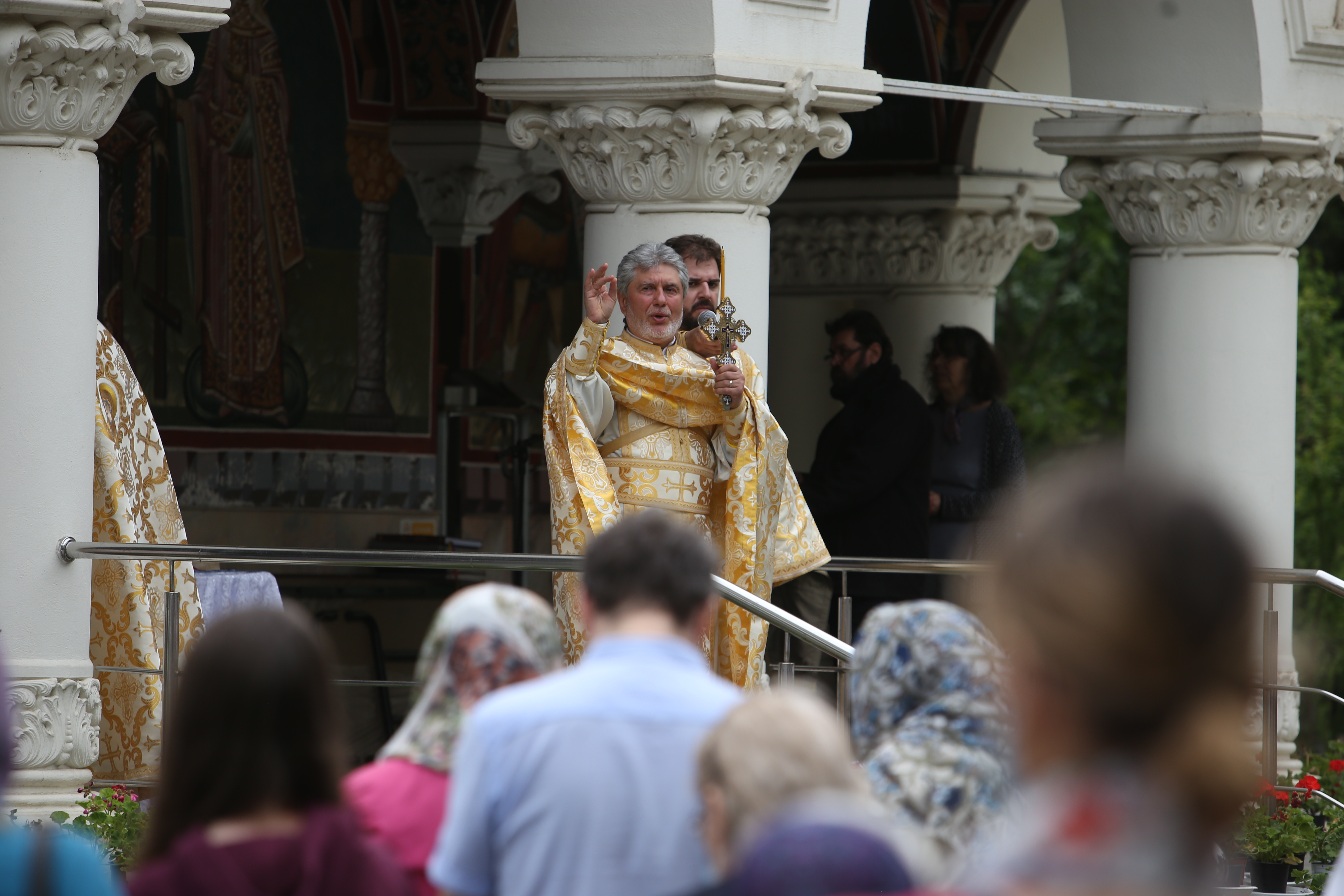 Flori în locul credincioșilor la slujba de duminică, la o biserică din București. Imaginile au devenit virale
