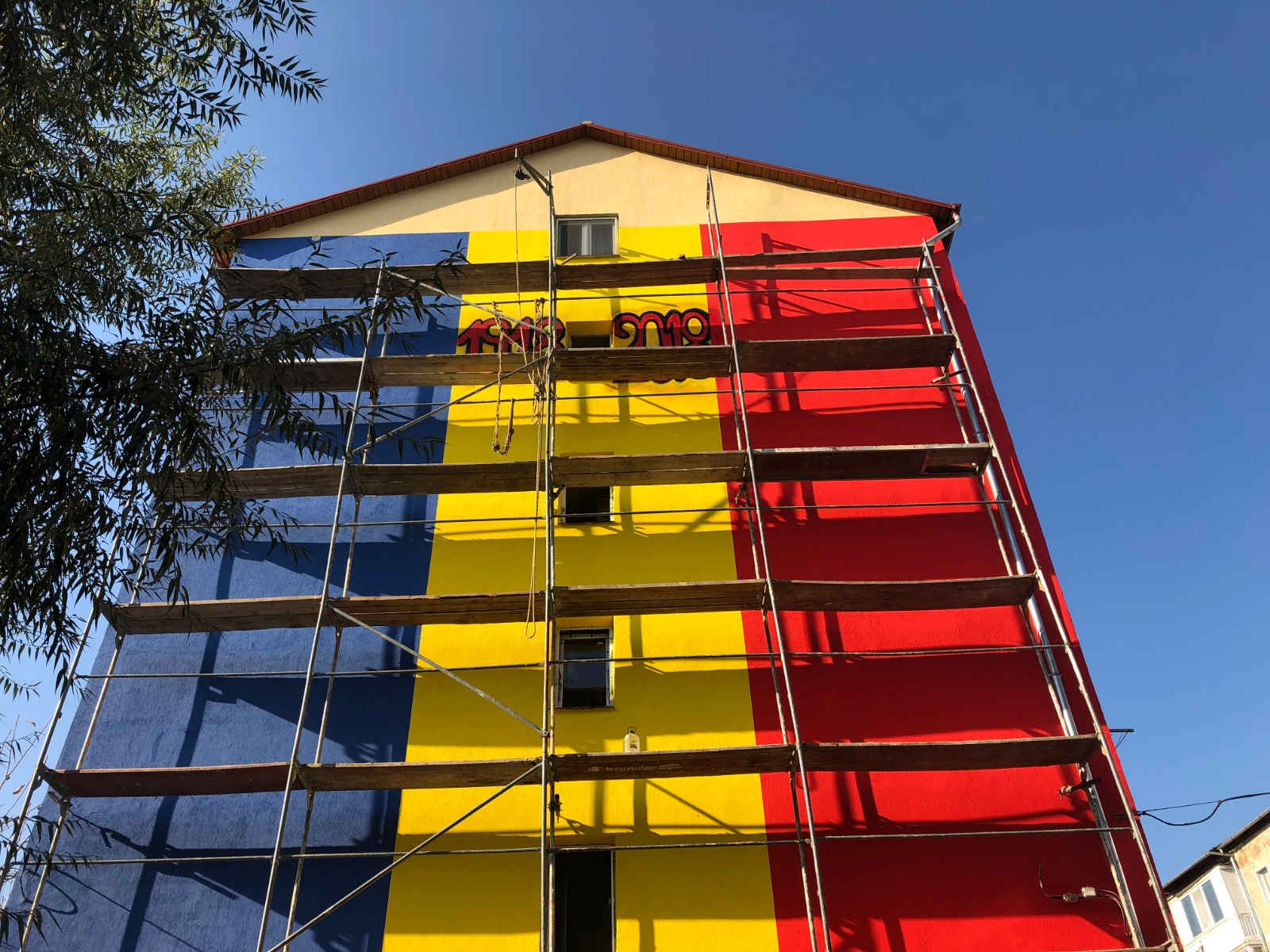 FOTO/ Gest de Centenar: Un bloc din Timișoara a fost vopsit în culorile drapelului României