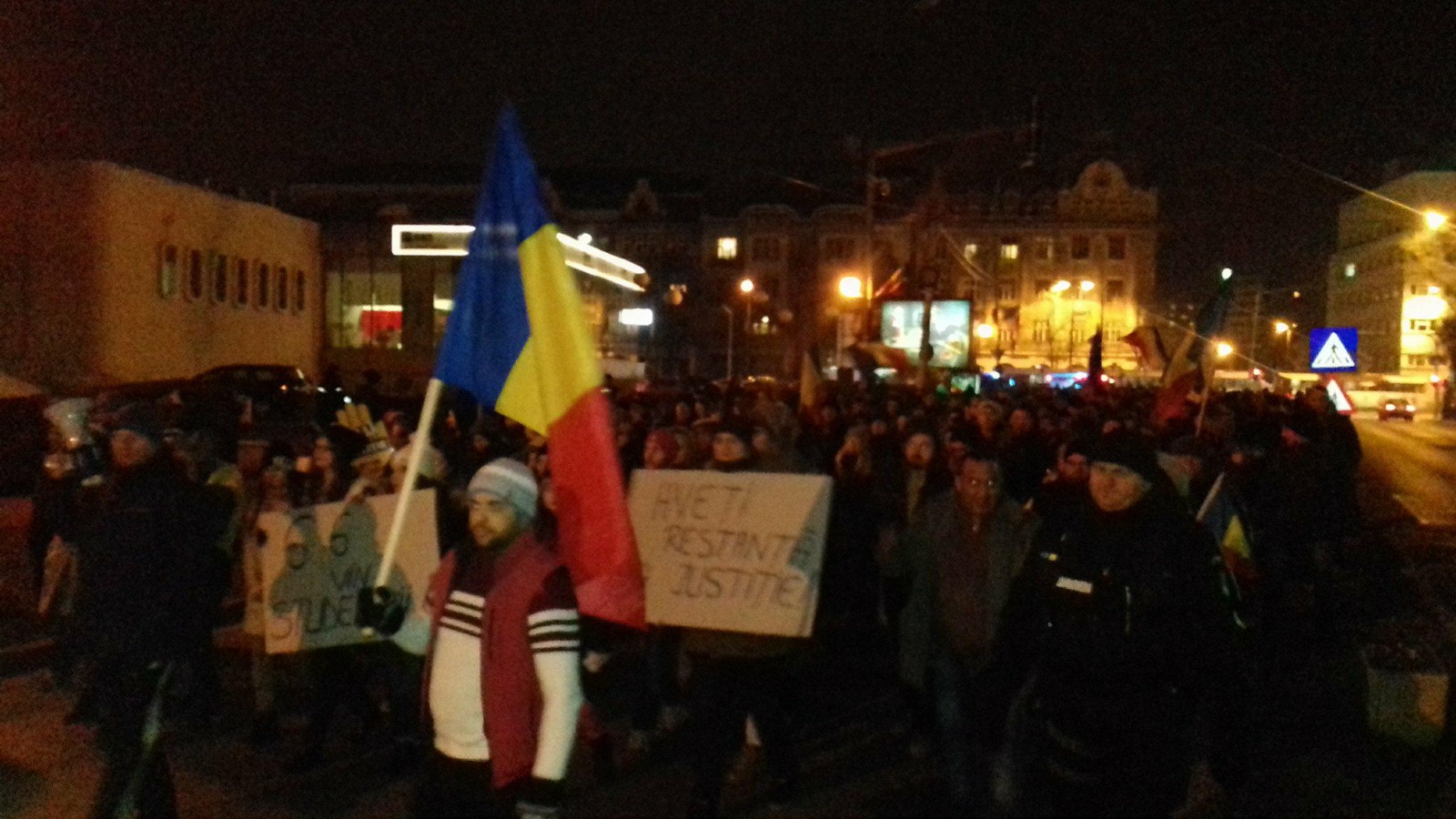 FOTO. Moș Crăciun protestează la Timișoara, alături de sute de timișoreni: „Out of Service”