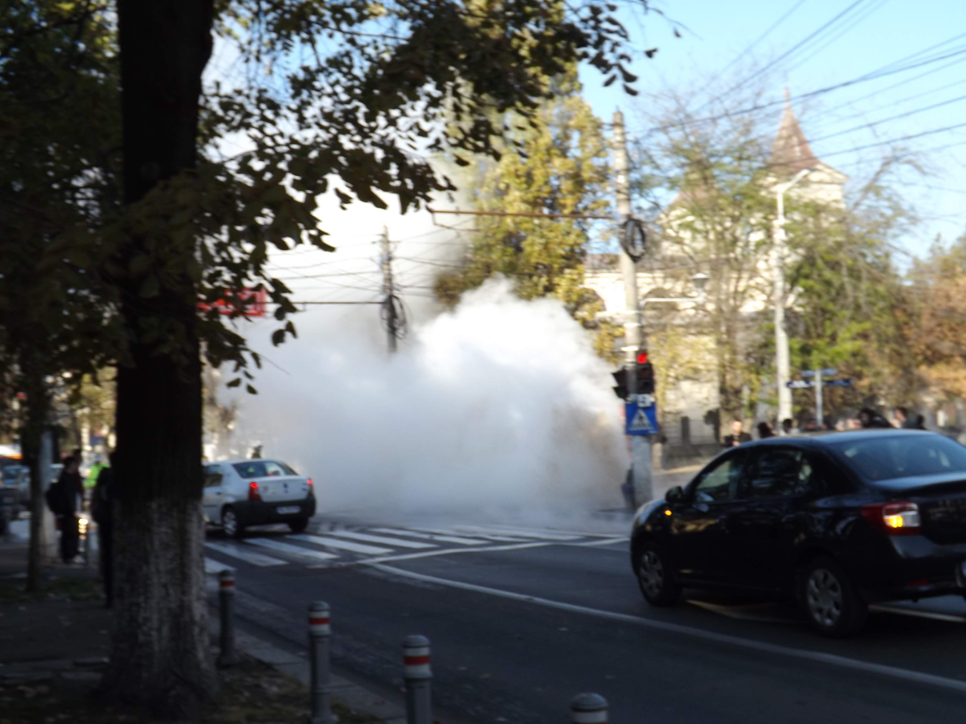 Gheizer de 2 metri în centrul Galaţiului, după fisurarea unei conducte | FOTO