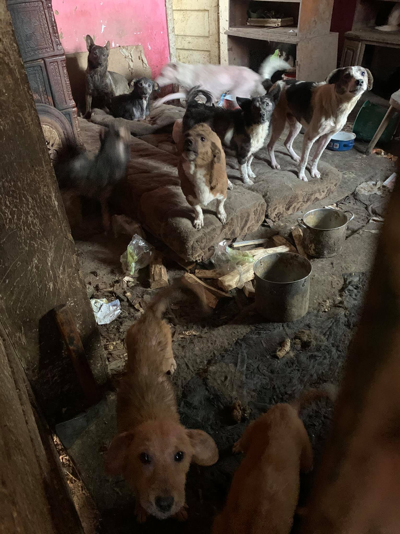 Imagini de nedescris într-o casă dintr-o comună suceveană unde o femeie trăia cu 14 câini și 3 pisici, închiși toți într-o cameră cu ferestrele bătute în cuie