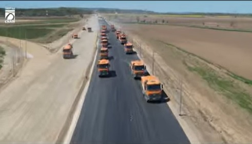 Imagini de pe șantierul Autostrăzii Moldovei A7. UMB a așternut două straturi de asfalt pe 20 de kilometri ai tronsonului Bacău – Pașcani