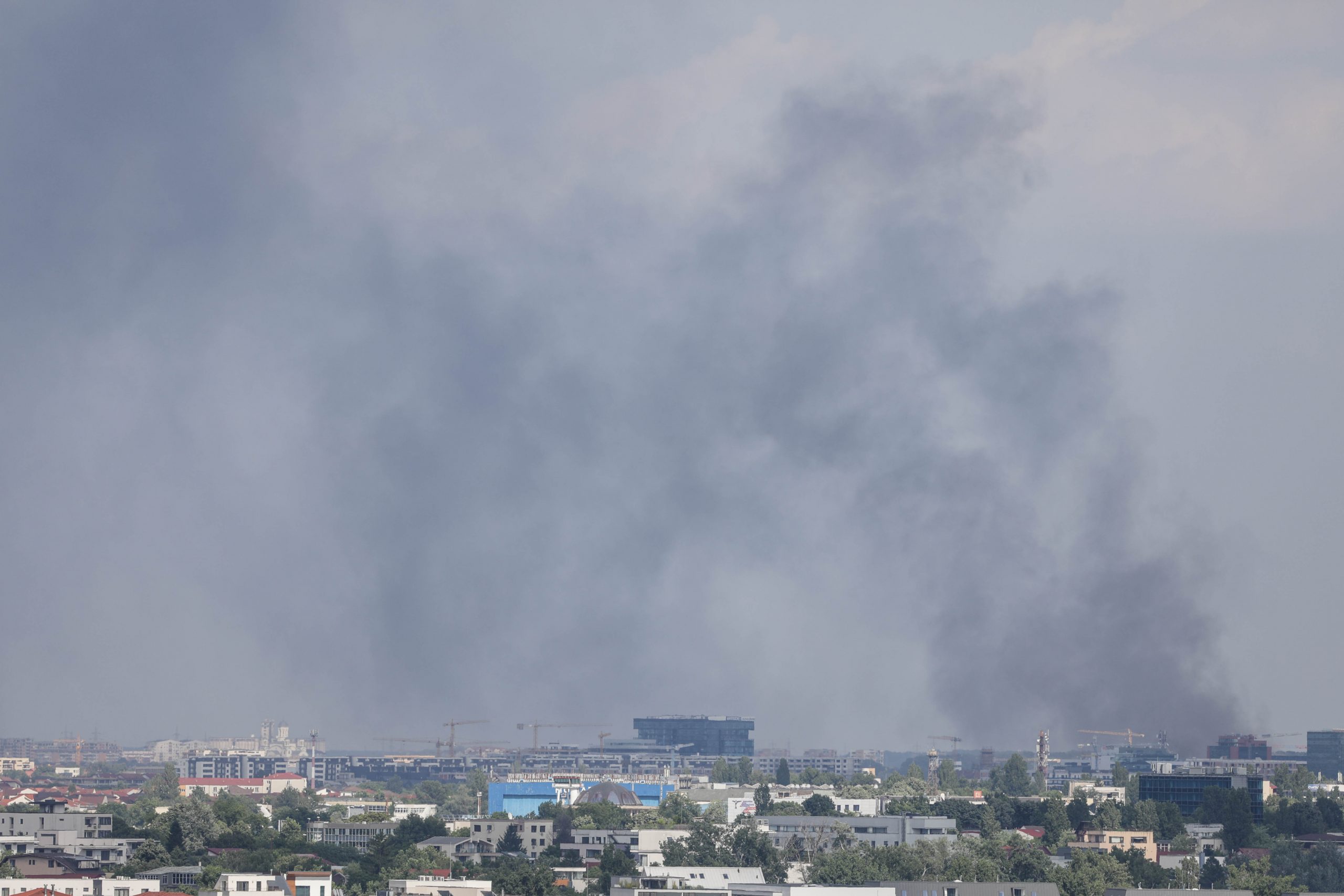 VIDEO | Incendiu masiv în nordul Capitalei, în zona Pipera. Un bloc în construcții, cuprins de flăcări