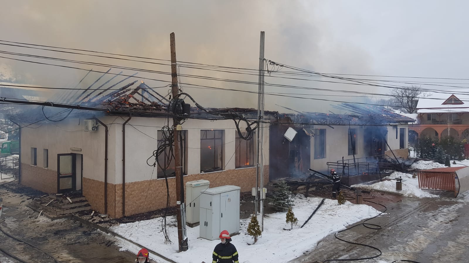 Incendiu de proporții în localitatea vrânceană Fitionești. Primăria a fost cuprinsă de flăcări, iar angajații au reușit să iasă înaintea sosirii pompierilor