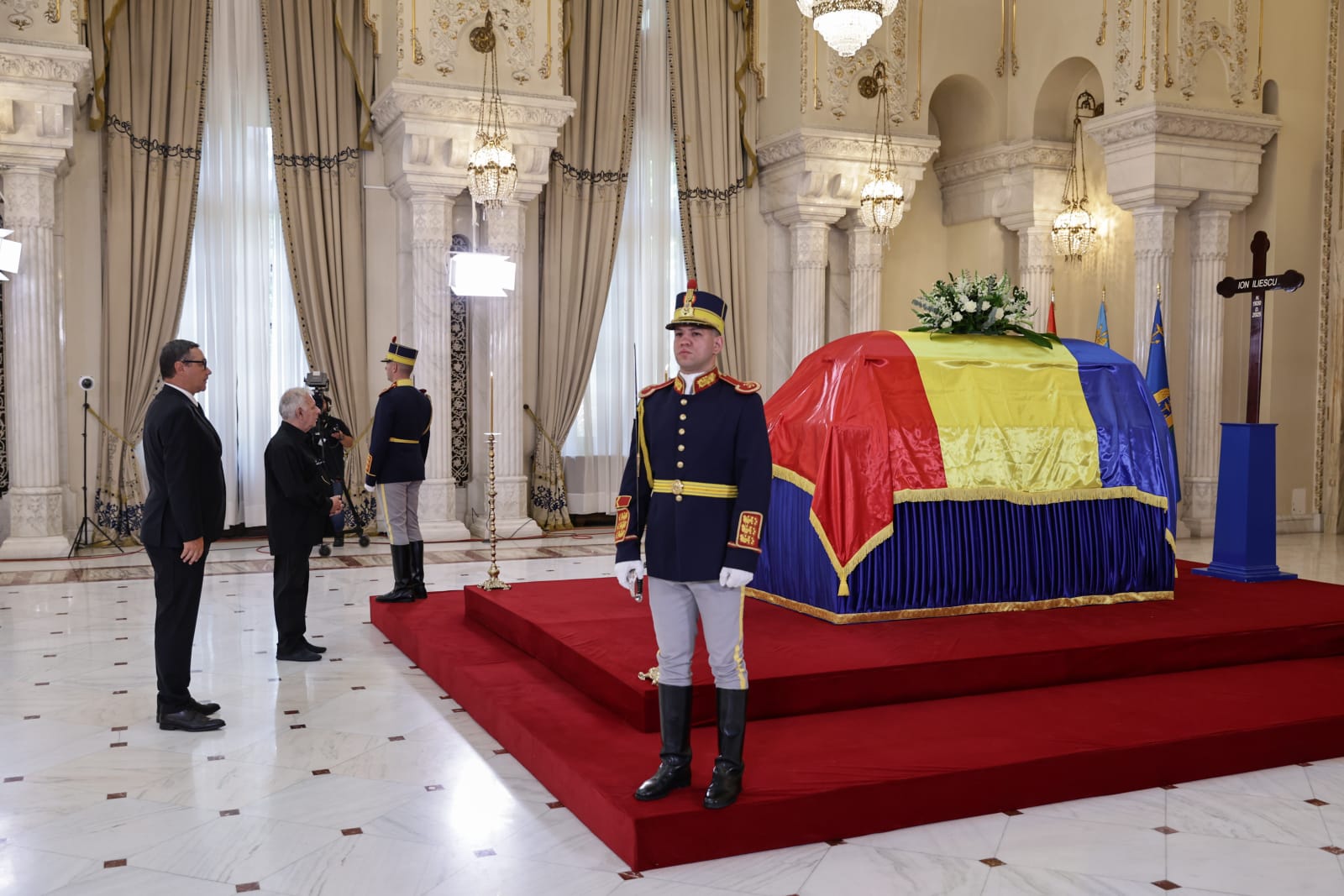 Sicriul lui Ion Iliescu depus pe catfalc, sala Unirii, Cotroceni (12)