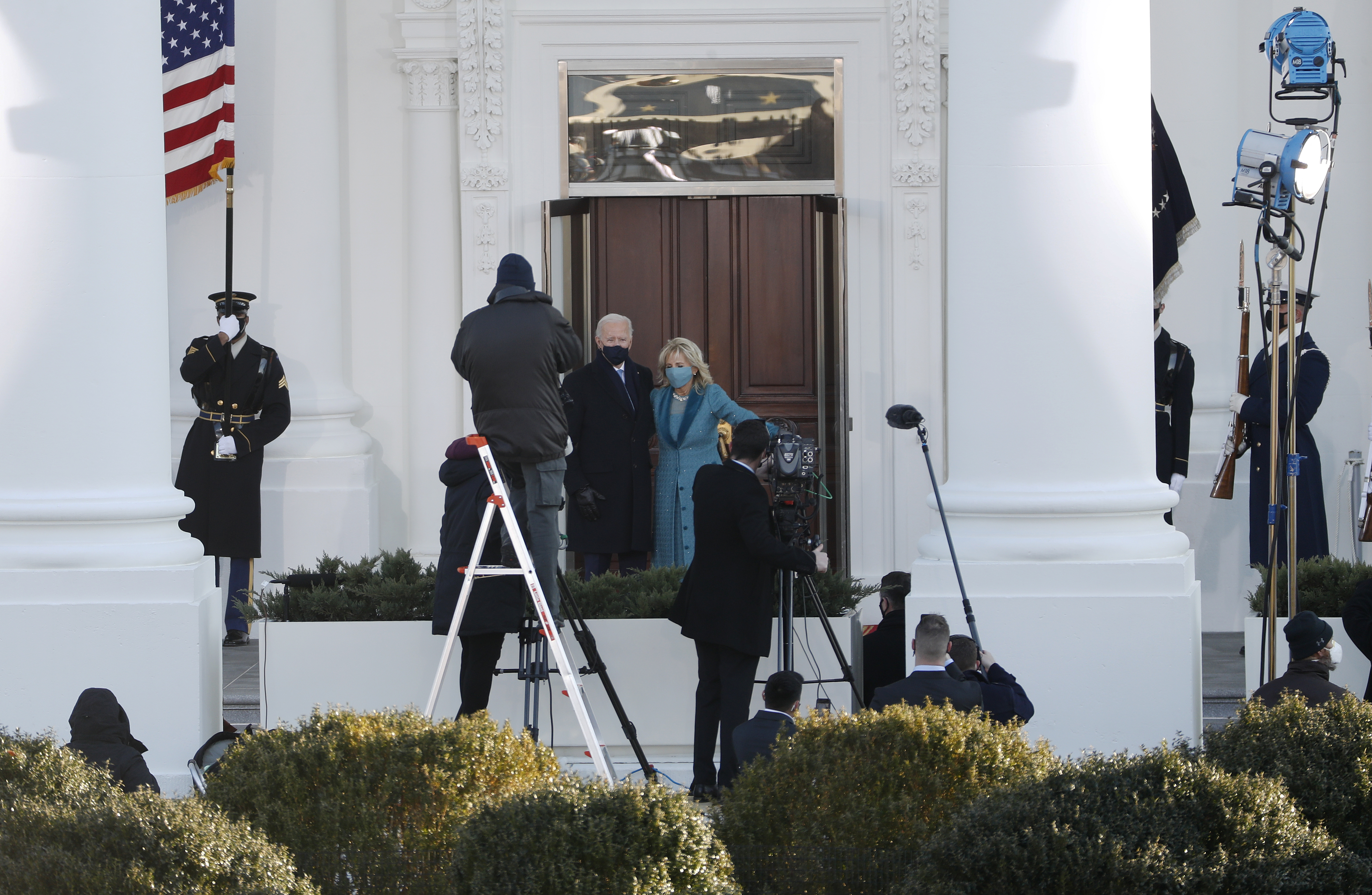 epa08954154 US President Joe Biden and First Lady Dr. Jill Biden pose as they prepare to enter the White House following the inauguration ceremony on the West Front of the US Capitol in Washington, DC, USA, 20 January 2021. Biden won the 03 November 2020 election to become the 46th President of the United States of America. EPA-EFE/SHAWN THEW