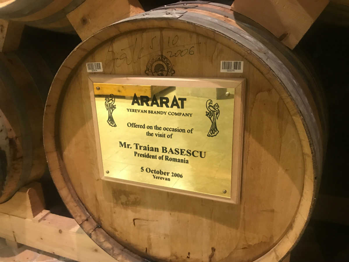 Ion Iliescu și Traian Băsescu au câte un butoi de brandy la fabrica de coniac din Erevan!
