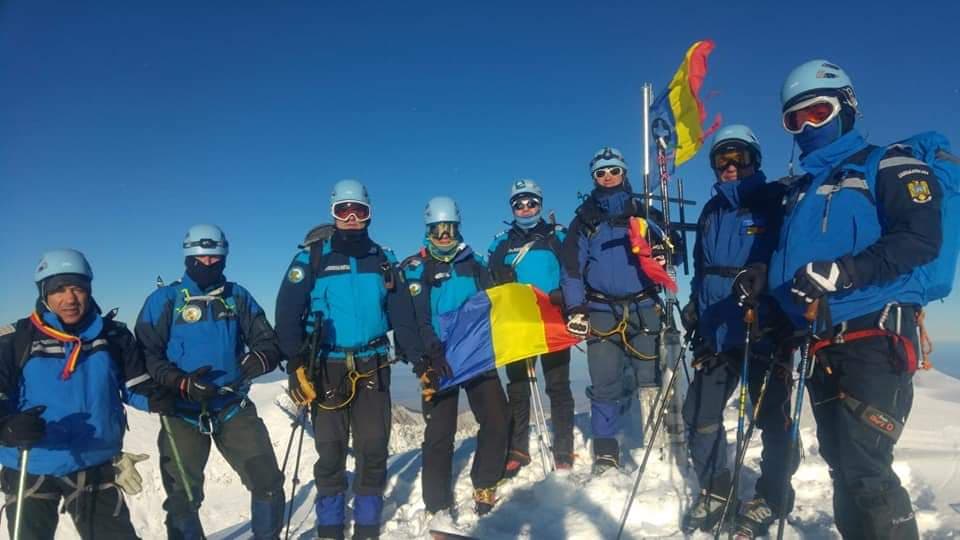 FOTO/ Jandarmii montani au arborat steagul României pe Vârful Moldoveanu