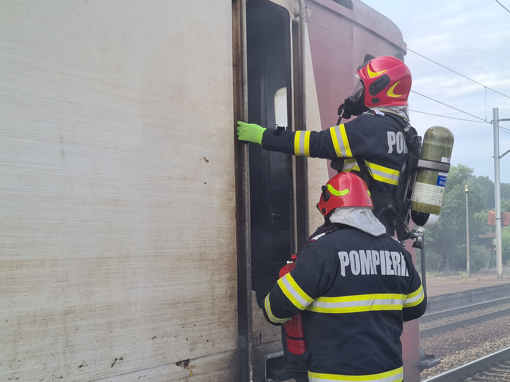 Locomotiva unui tren de călători a luat foc în județul Prahova, pe ruta Brașov – București Nord. Pasagerii s-au autoevacuat