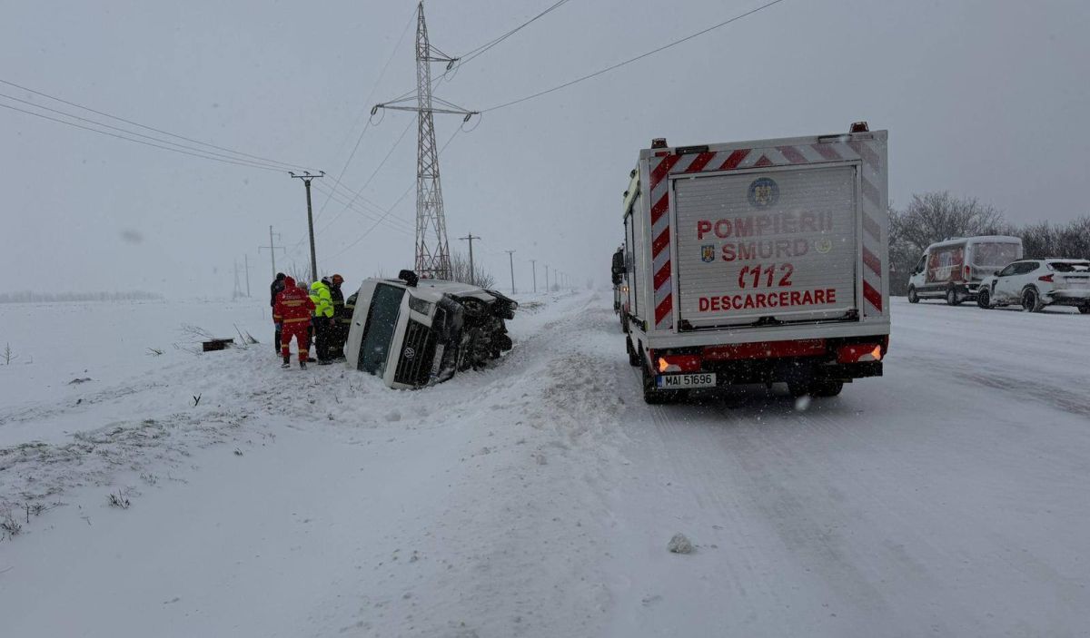 Un microbuz plin cu 16 oameni s-a răsturnat la Plopşoru, în Giurgiu. A fost activat planul roşu de intervenţie