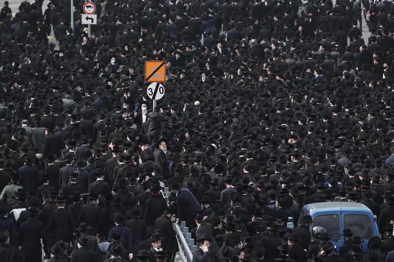 epaselect epa08977097 Ultra Orthodox Jews gather around the body of Head of the Brisk Yeshiva, Rabbi Meshulam Dovid Soloveitchik, that passed away aged 99 after months of fighting COVID-19, in Jerusalem, Israel, 31 January 2021. According to media reports, thousands took part at the funeral despite Police restrictions. EPA-EFE/ABIR SULTAN