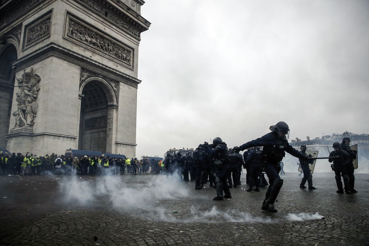 FOTO | Noi violențe la protestul vestelor galbene din Paris: tunuri cu apă, gaze lacrimogene și zeci de rețineri