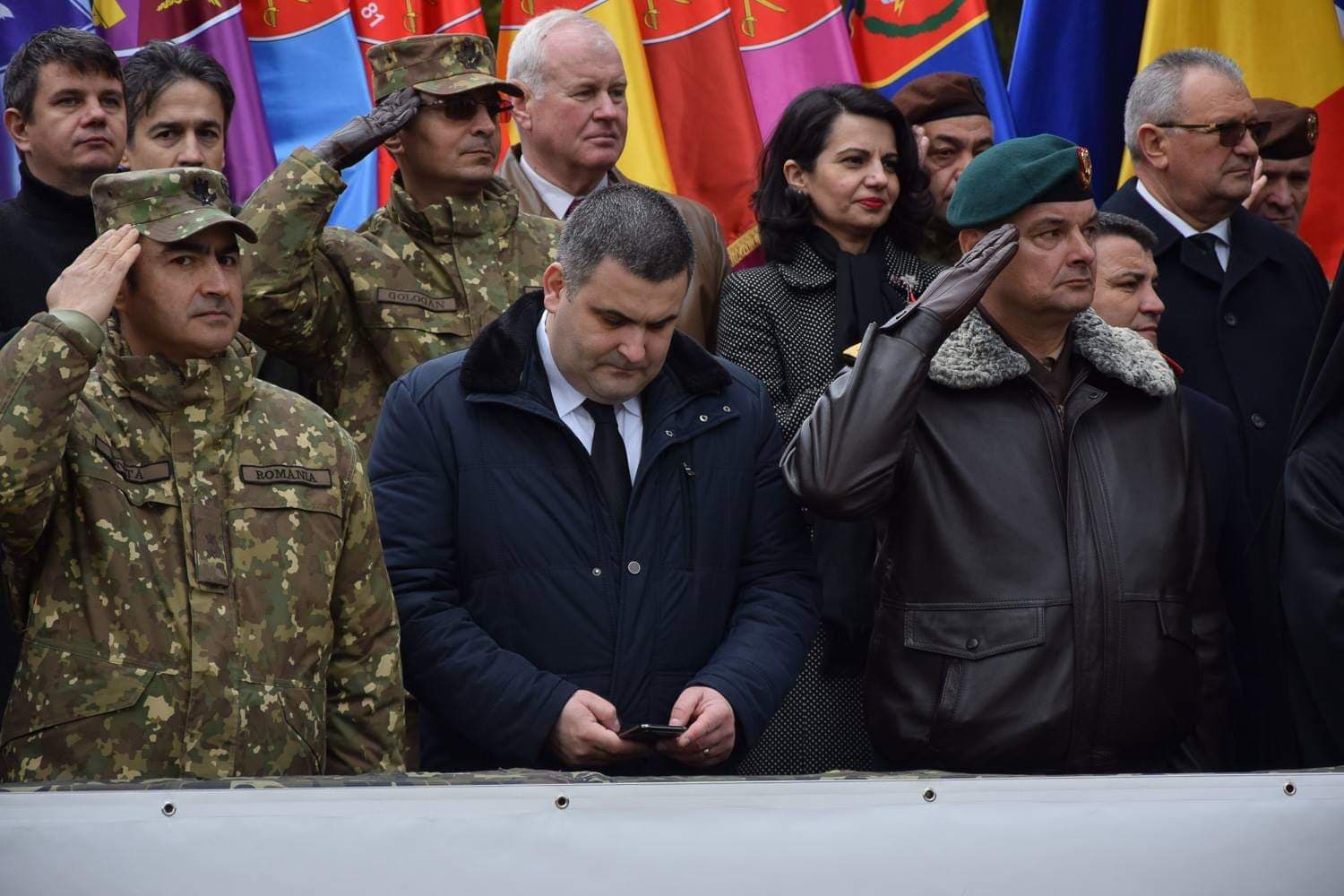 FOTO | Ministrul Apărării, Gabriel Leş, și-a verificat telefonul în timp ce militarii întorşi din Afganistan îi dădeau onorul