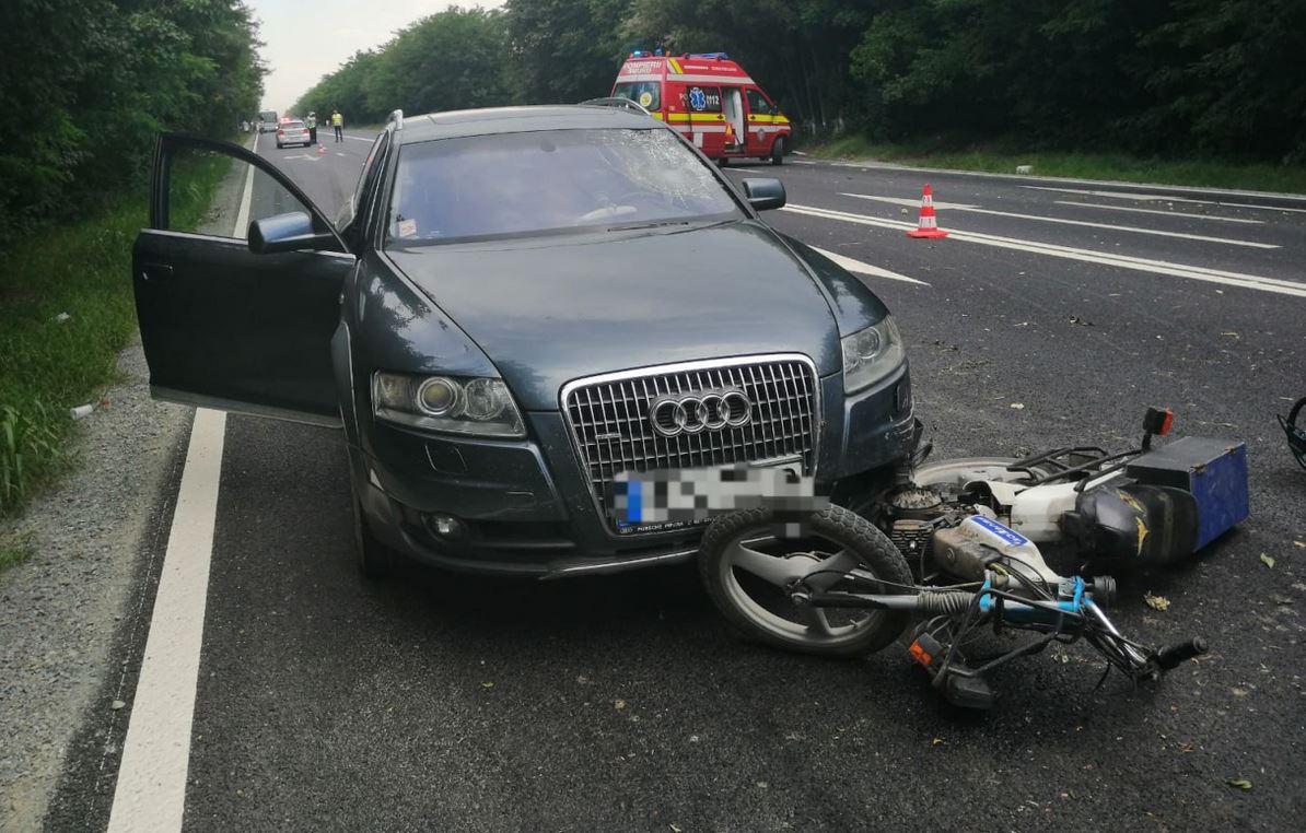 Motociclist rănit grav de o maşină, la ieşirea din Olimp. A fost chemat un elicopter SMURD