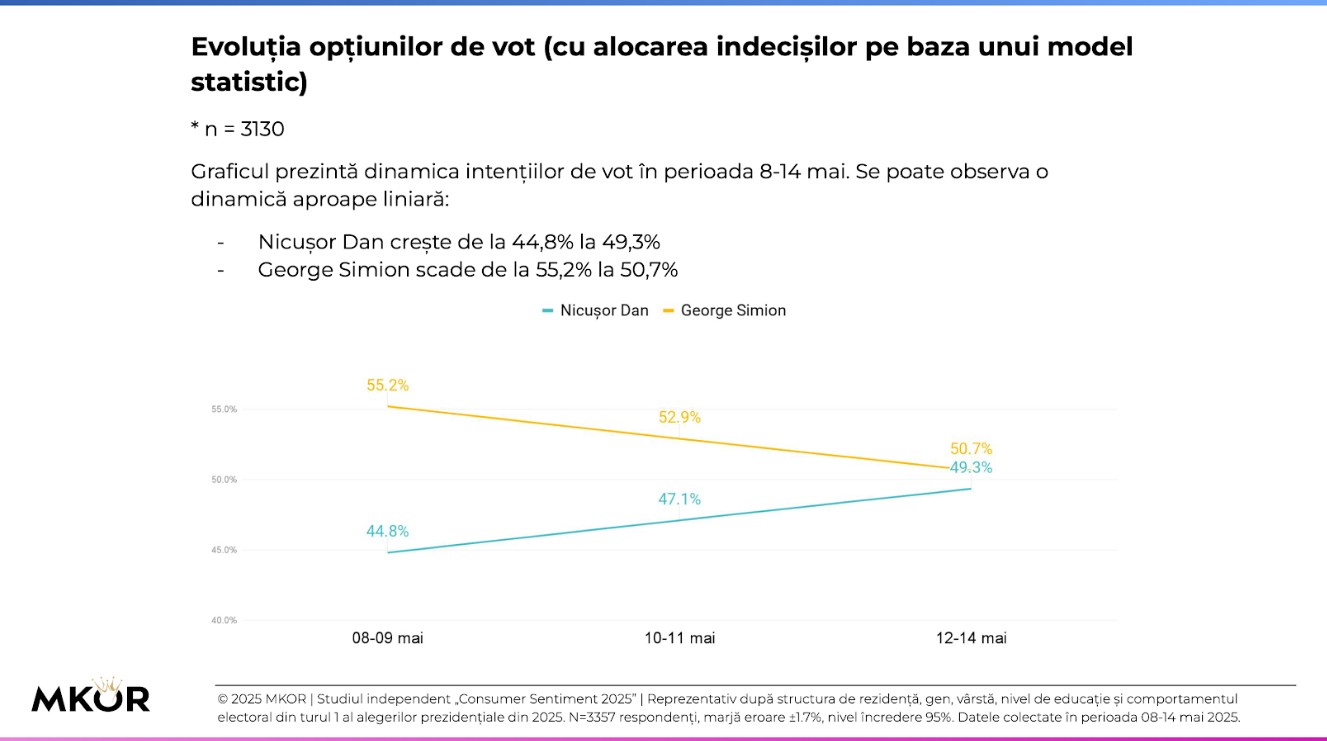 Nicușor Dan și George Simion, bătălie aprigă pentru votul indecișilor, conform unui nou sondaj MKOR