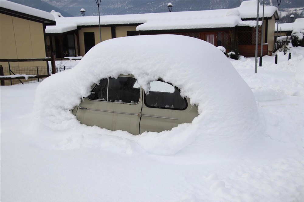 epa10425025 A car is covered after 50-60 cm of snowfall in Norcia (Perugia), Italy, 23 January 2023. EPA-EFE/GIANLUIGI BASILIETTI